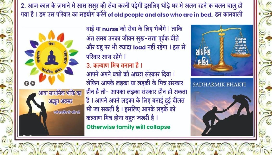 गौ सेवा, जीव दया, सामूहिक विवाह, साधर्मिक भाई की भक्ति - स्वावलंबन योजना, विज्ञान एवं ईश्वरीय शक्ति का संबंध, अग्निहोत्र एक विज्ञान = जीव दया